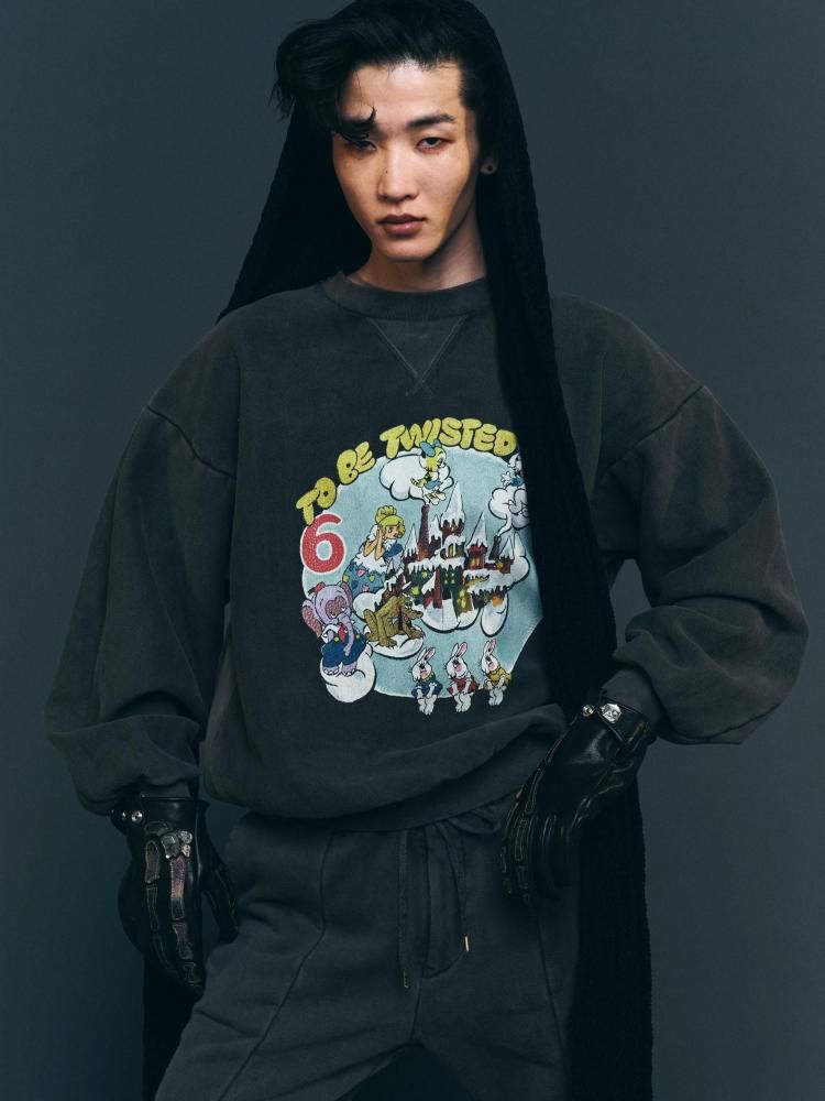 ファンタジックでユーモラスなグラフィックスウェットです。